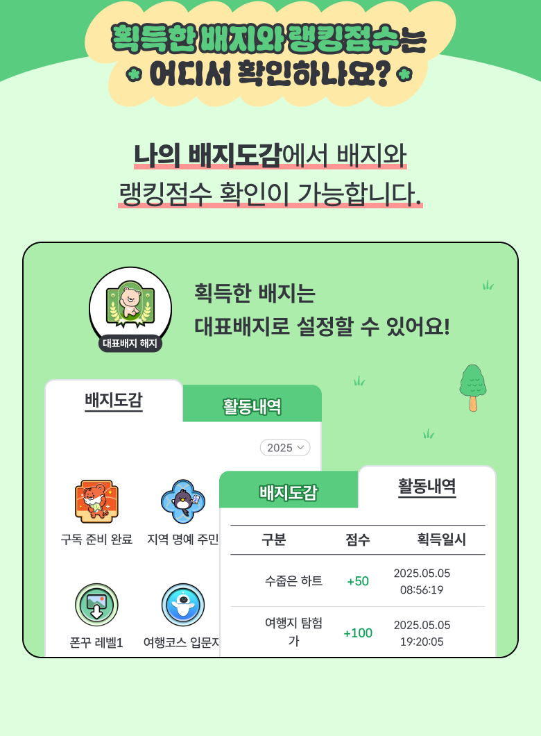 나의 배지도감에서 배지와 랭킹점수 확인이 가능합니다.