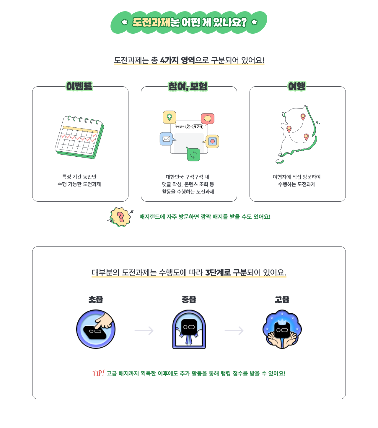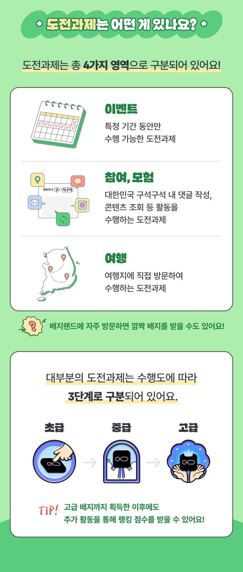 대한민국 구석구석 내 댓글 작성, 콘텐츠 조회 등 활동을 수행하는 도전과제